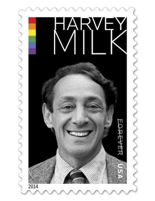 2014 = Harvey Milk is the first openly gay elected official on a U.S. stamp.